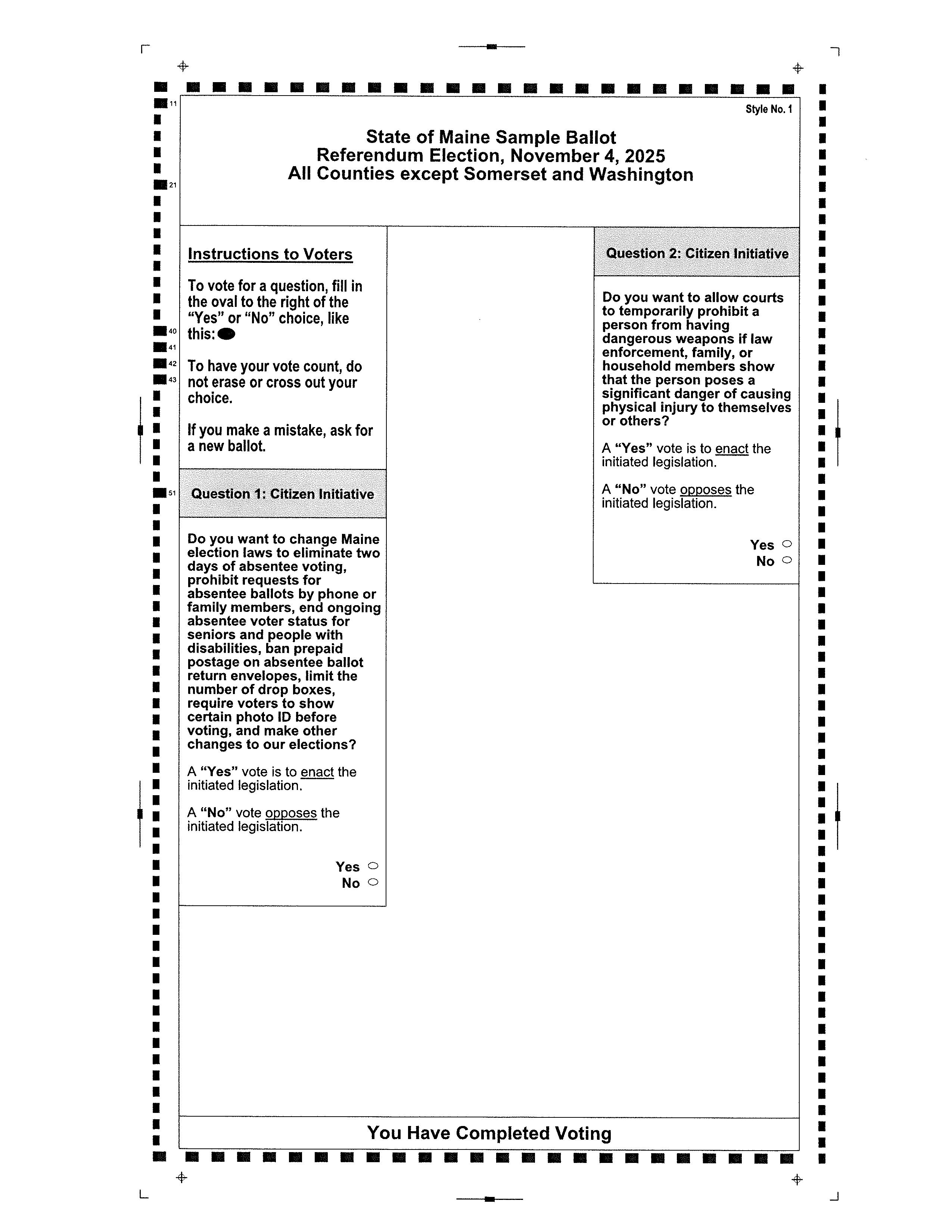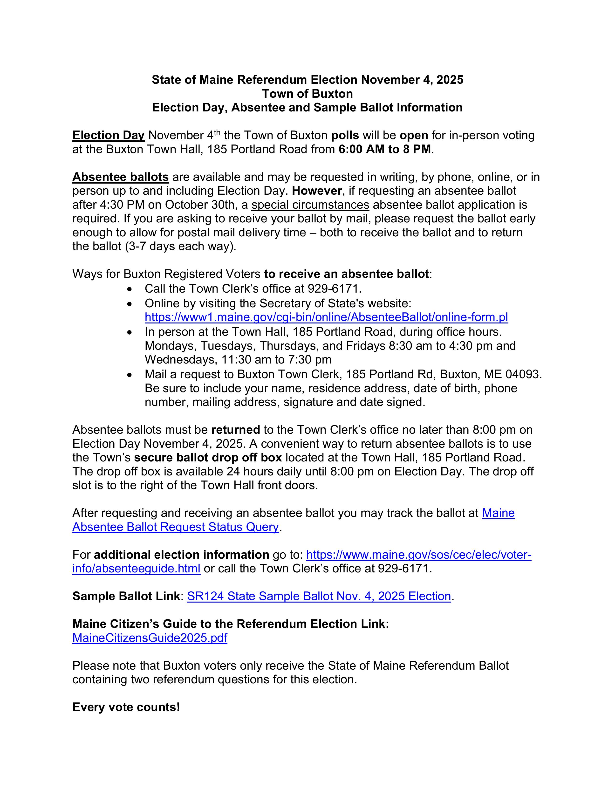 Absentee ballots are now available for the November 4th, 2025 State of Maine Referendum Election.